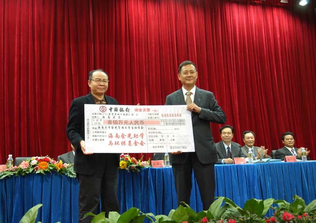 海南金光助学与环保基金会继2006年、2007年向海南大学各捐赠100万元人民币之后,2008年度再次向海南大学捐赠100万元人民币,资助600名贫困学生。3年来,海南大学共有1604名贫困学生获得该项助学金。这是海南大学迄今接受社会捐资助学额度最高、获助学生人数最多的助学活动。